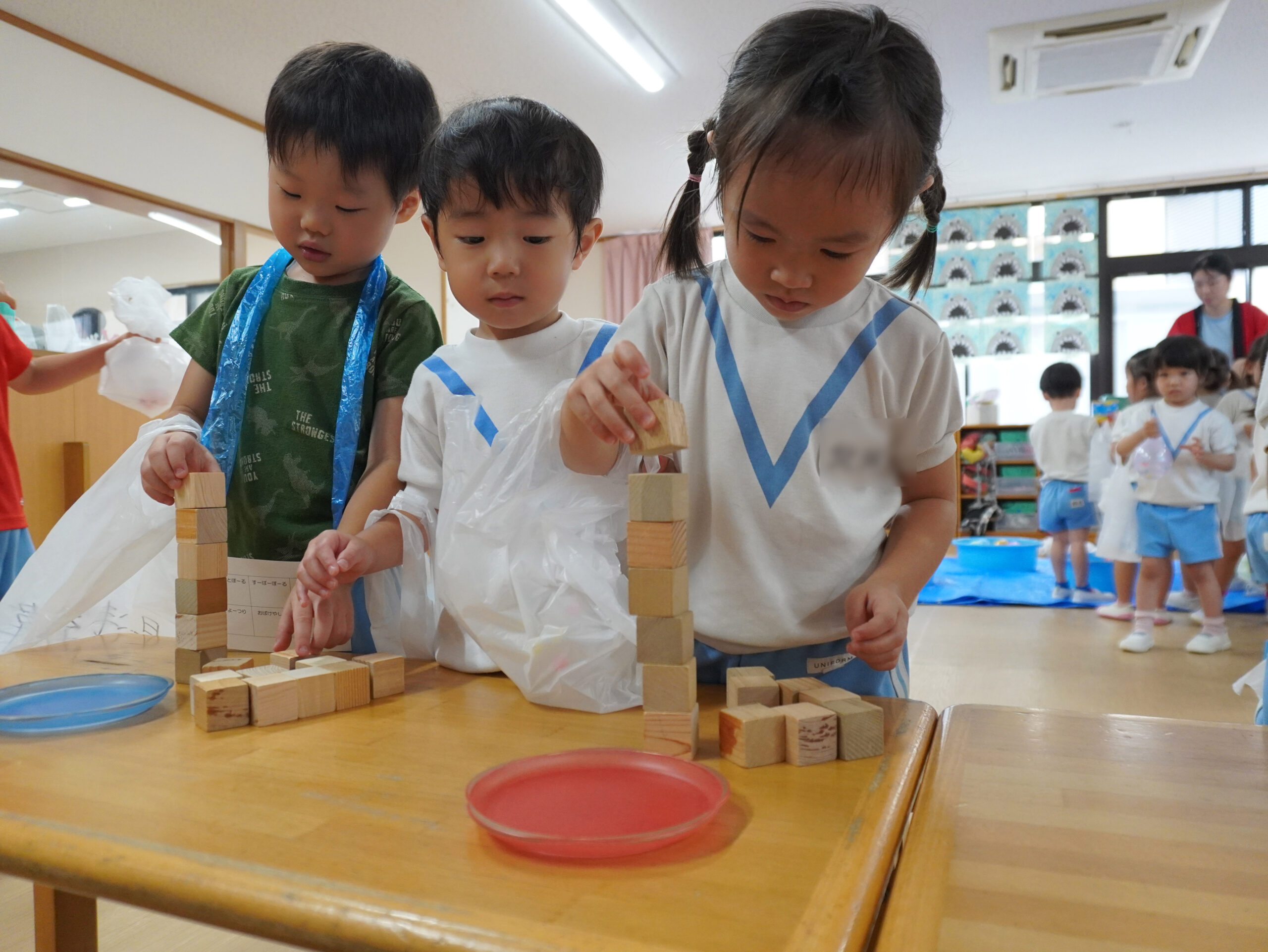 倒れないように高く積むのですが、できるだけ真っすぐに積もうと頑張っていました。