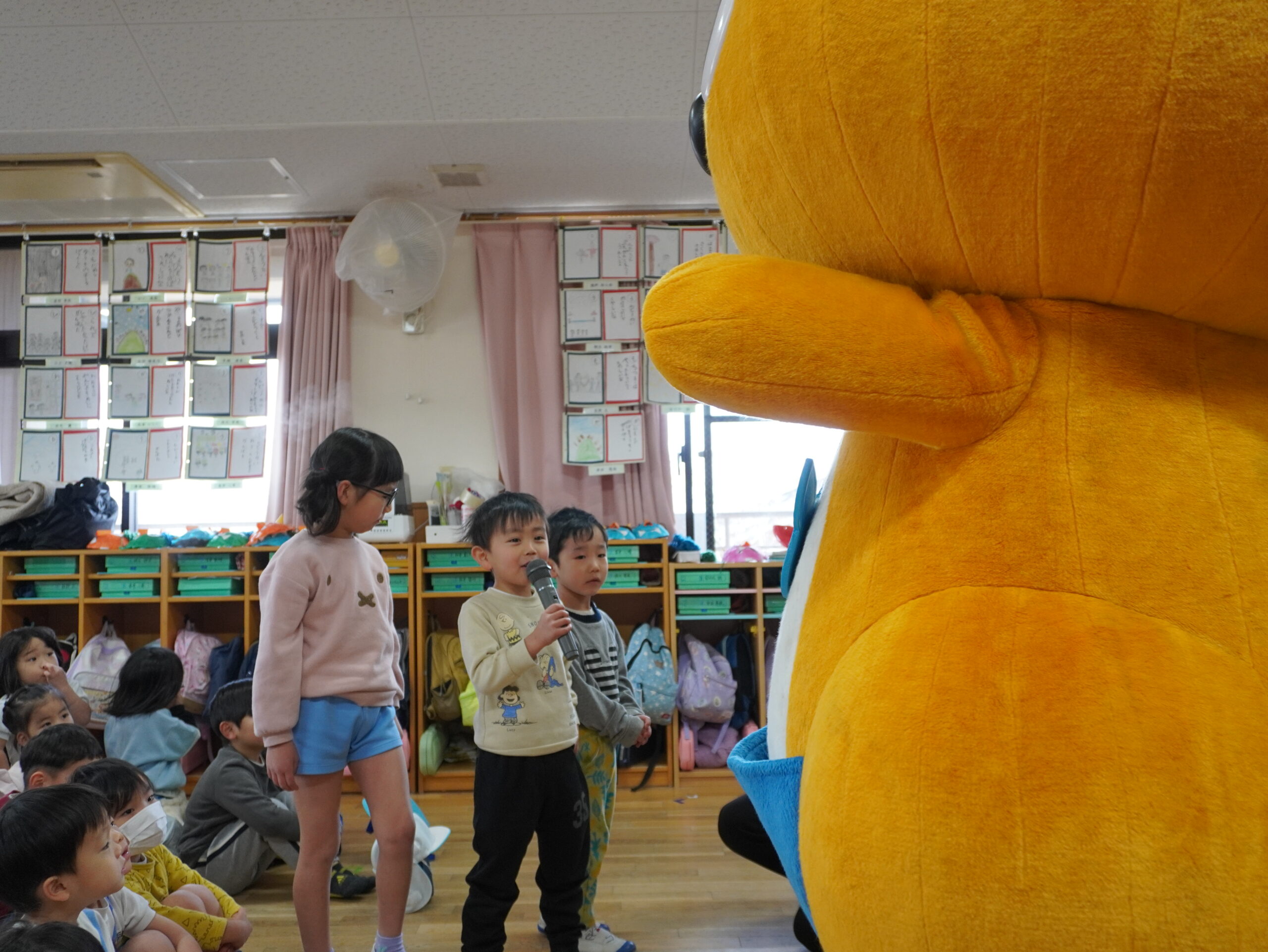 カンポくんへの質問タイムでは、カンポくんの好きな動物など子どもたちが考えた質問にカンポくんが答えてくれると、「へ~」「そうなんや~」と興味津々でしたよ。