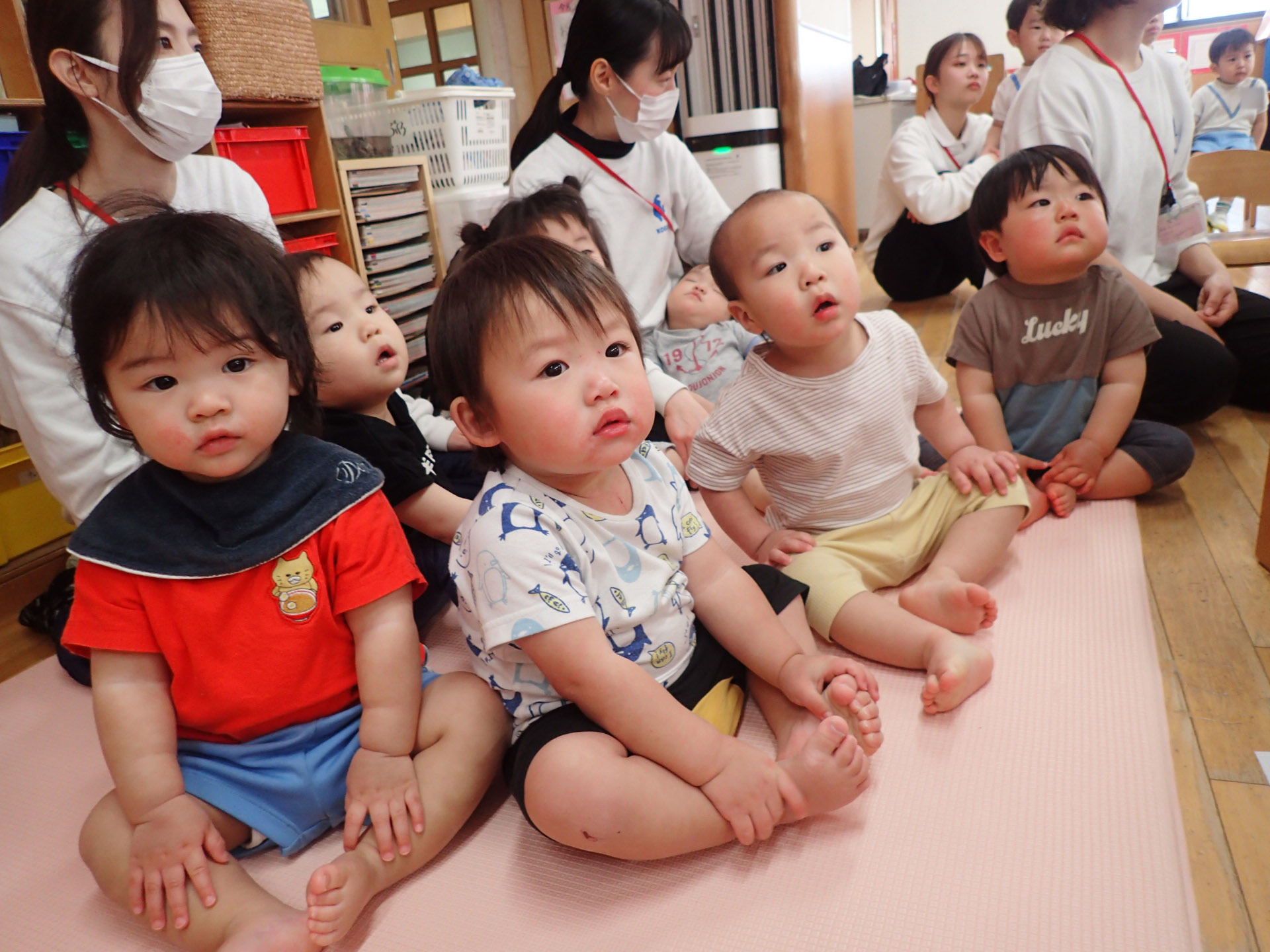 年長児ひかり組からは「ともだちになるために」の歌披露。