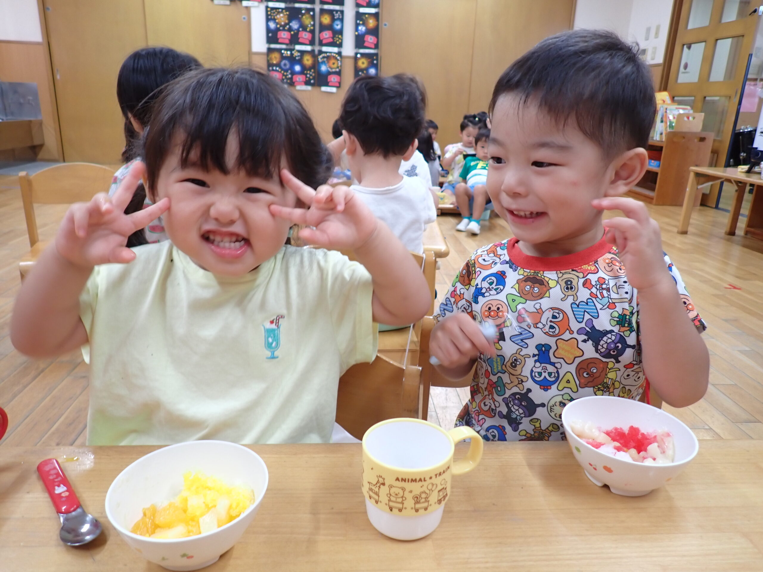 「つめたーい!」と言いながらも大きな口を開けて嬉しそうに食べていましたよ。