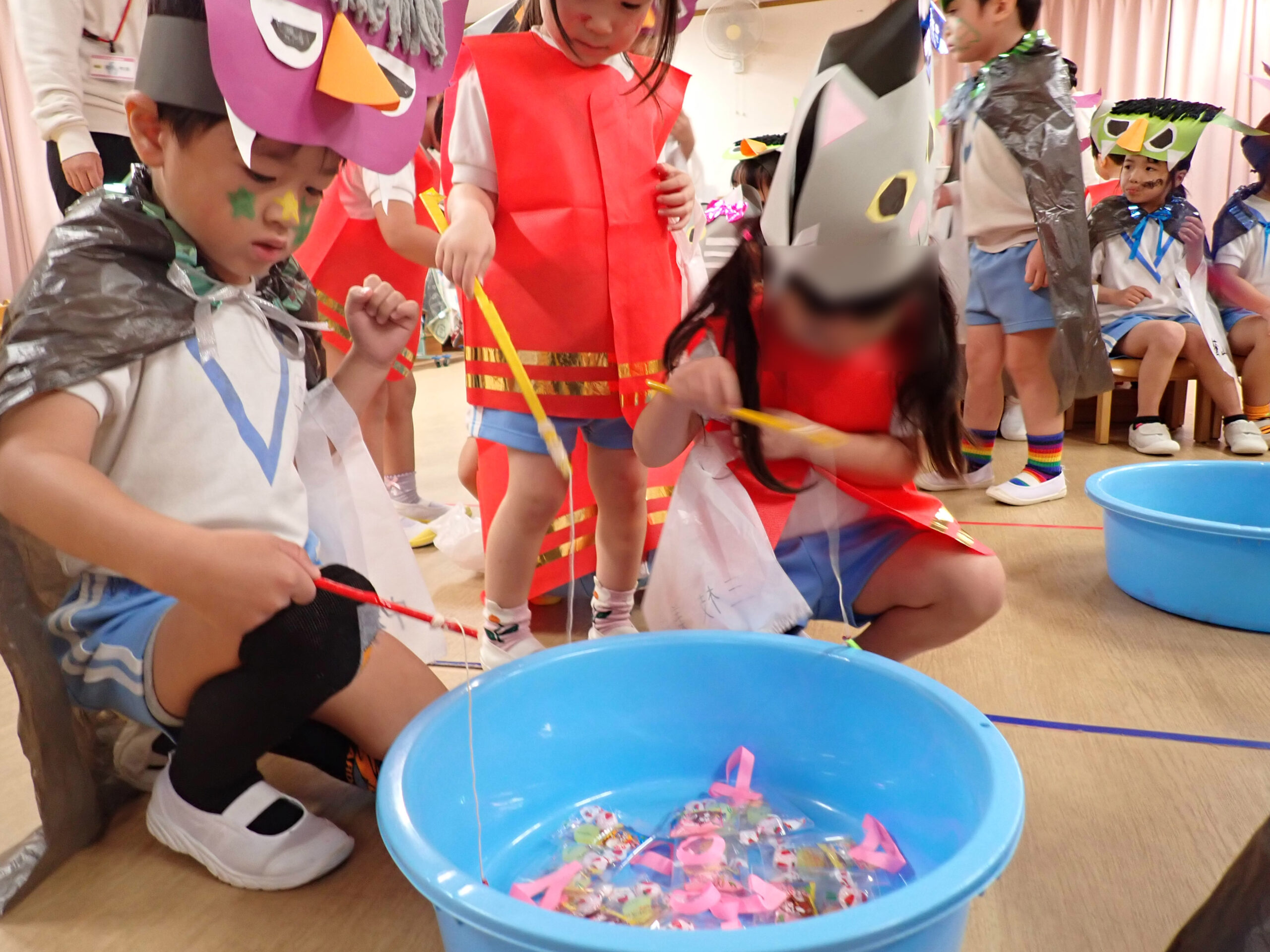 お菓子釣りでは真剣な眼差しで釣っています。