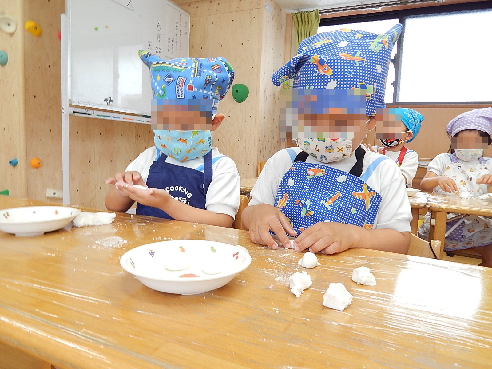 6月22火曜日、そらぐみはクッキングでみたらし団子を作りました。