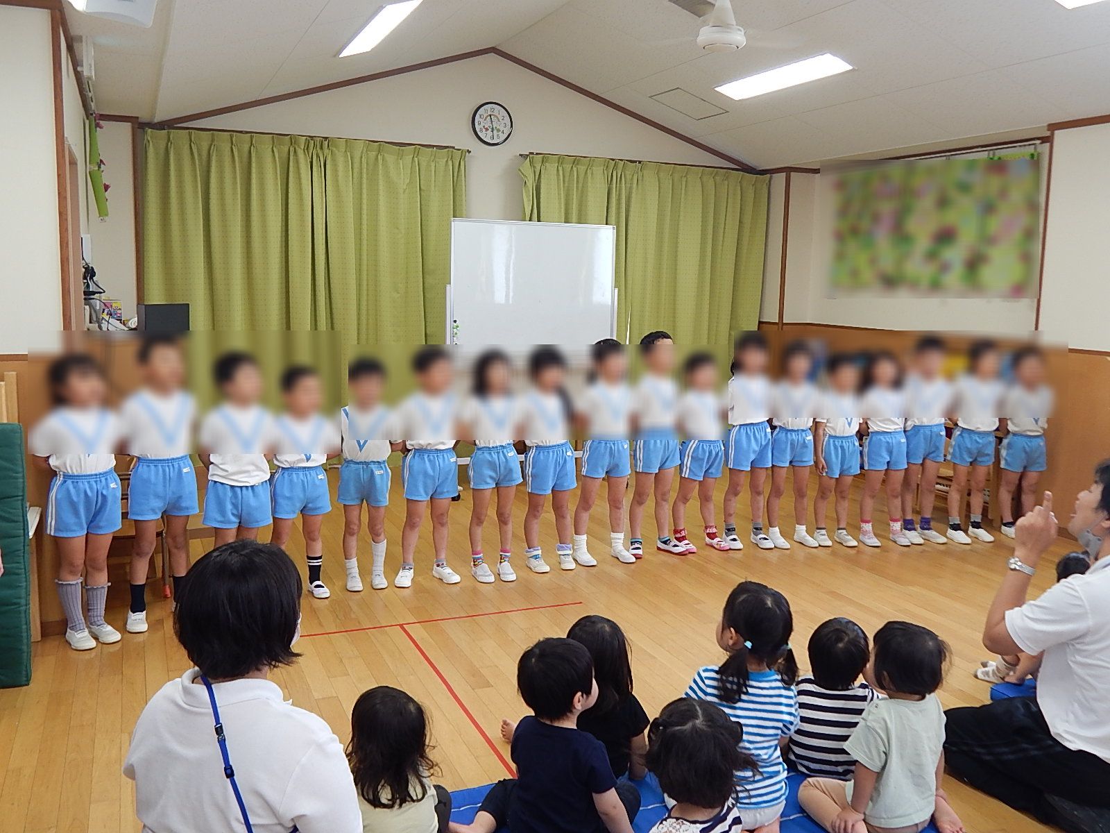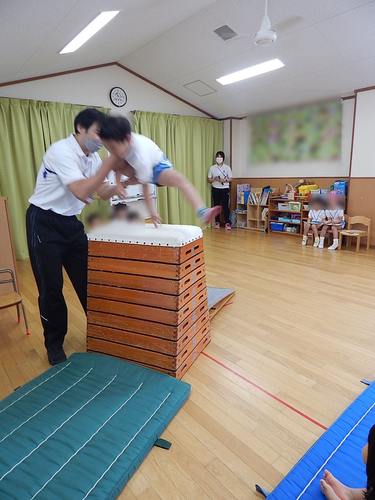 ひかり組さんは日々マラソンを頑張っているんだ!と胸を張ってお話してくれ、跳び箱も披露してくれました。たくさんの人が注目する中でかっこよくキメてくれました。この調子でこれからもどんどん自信をつけ、段数があがっていくことを期待しています!