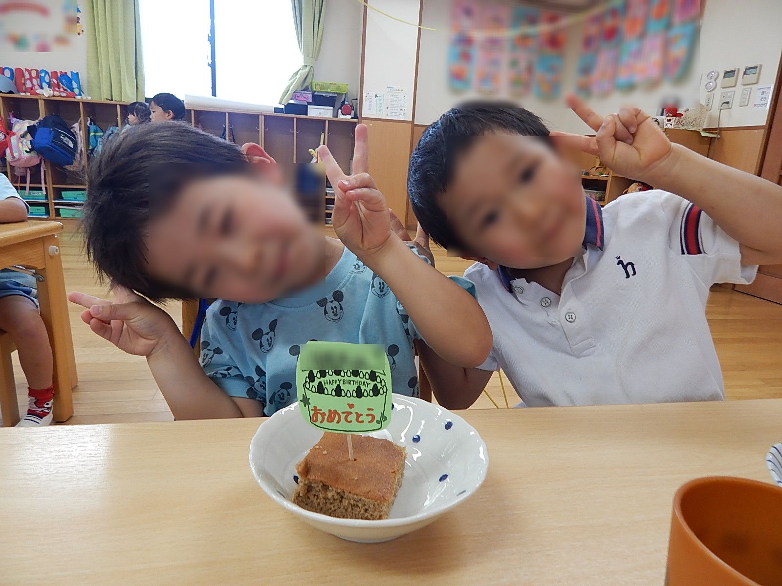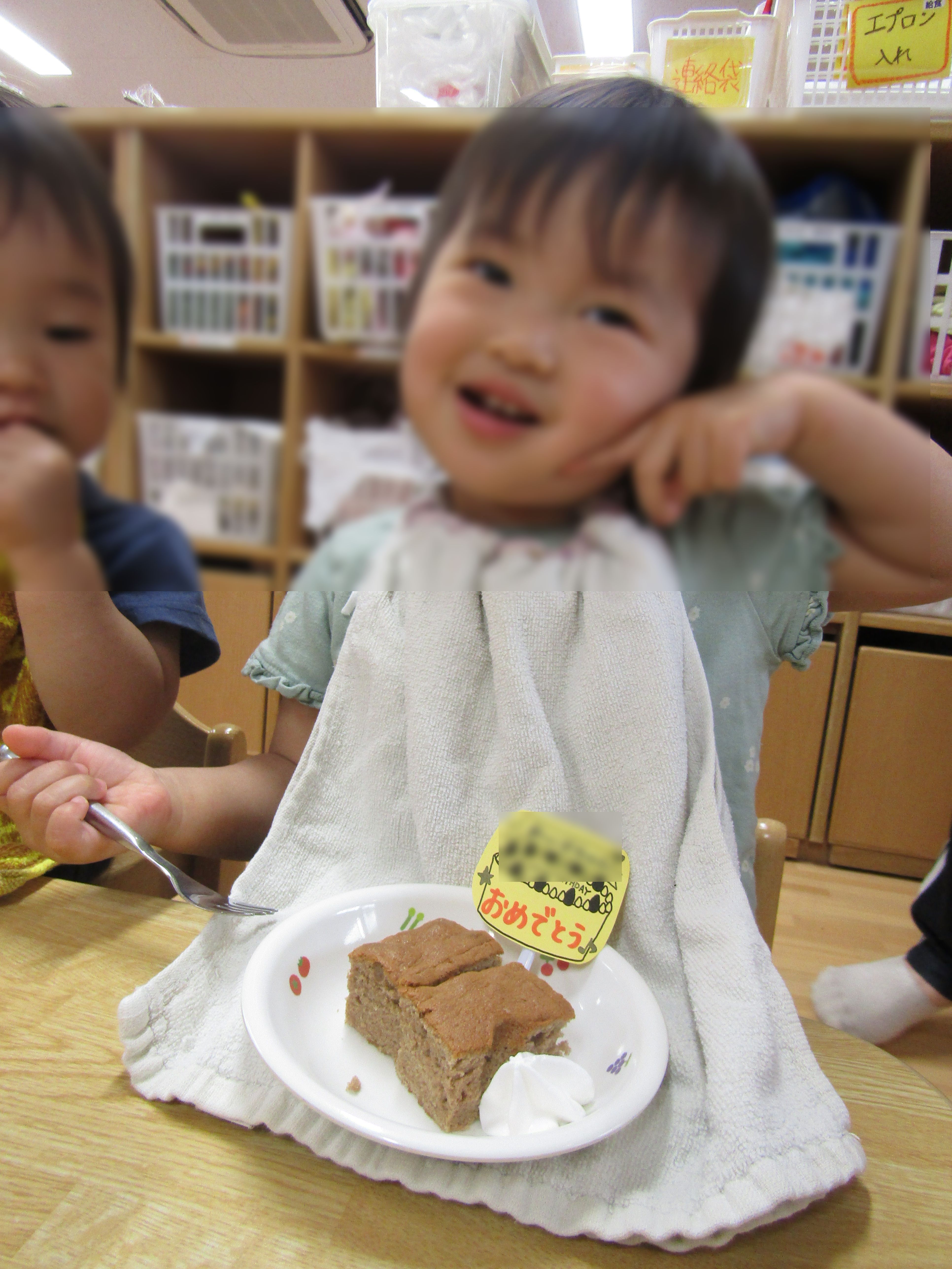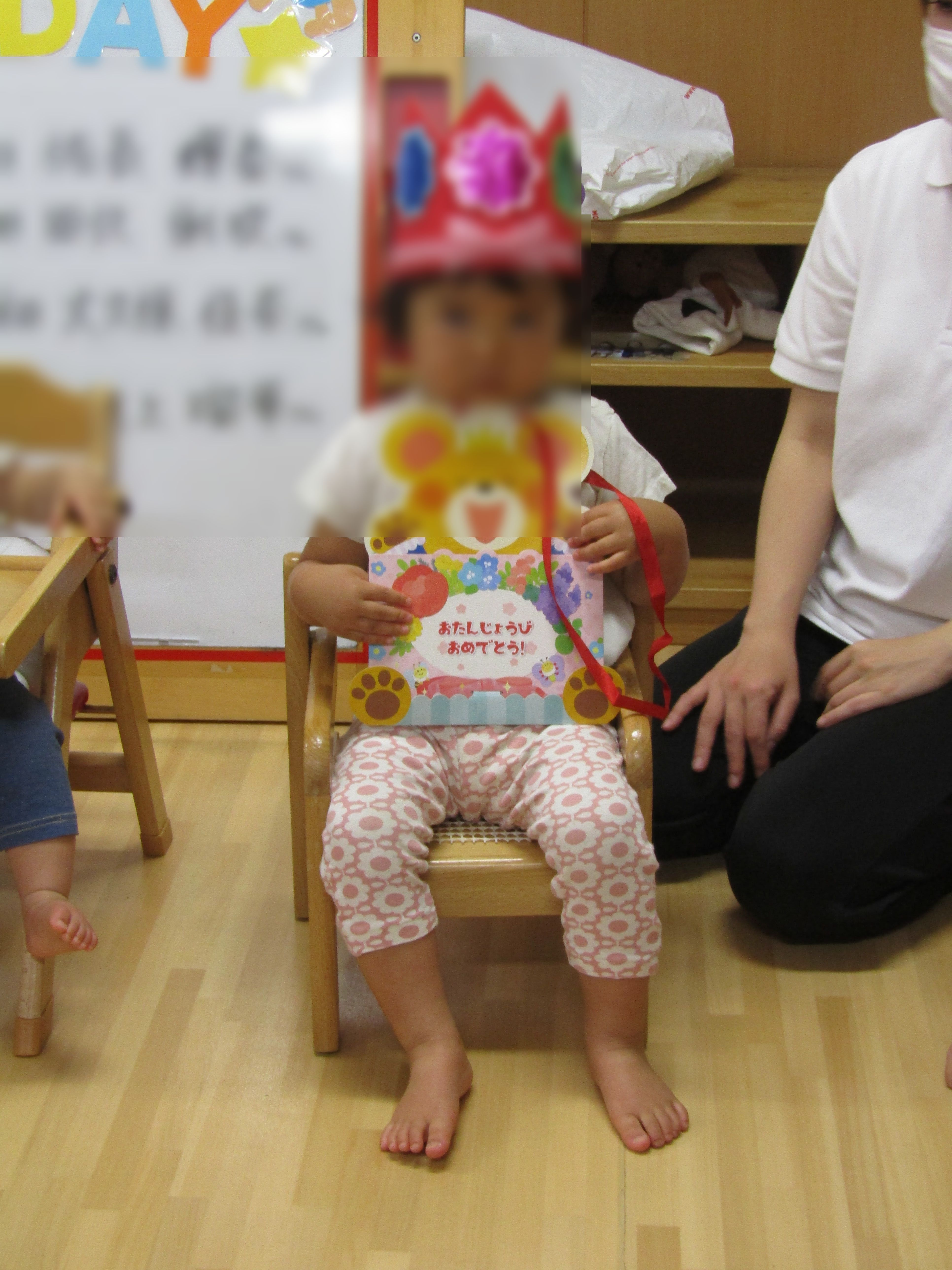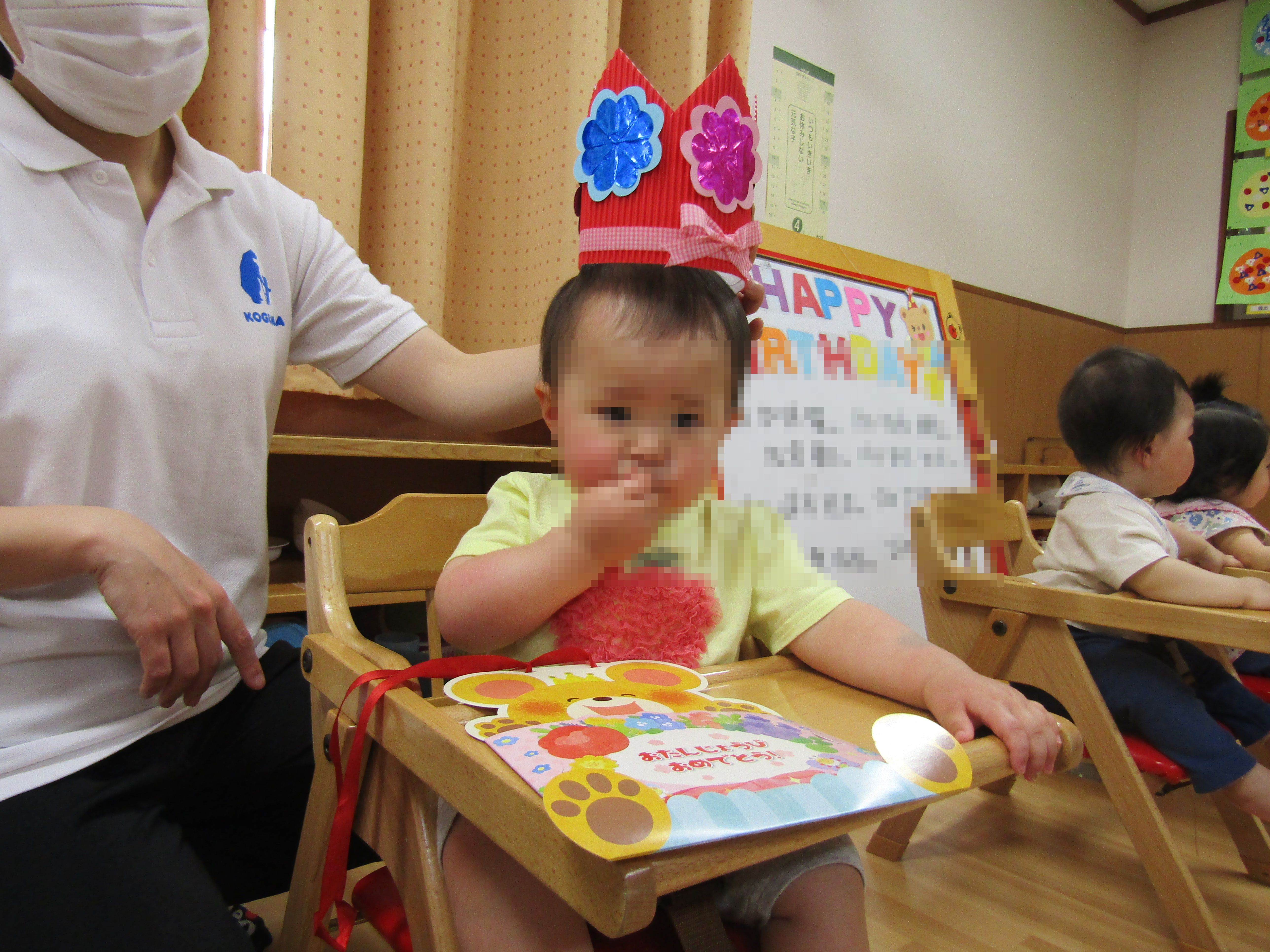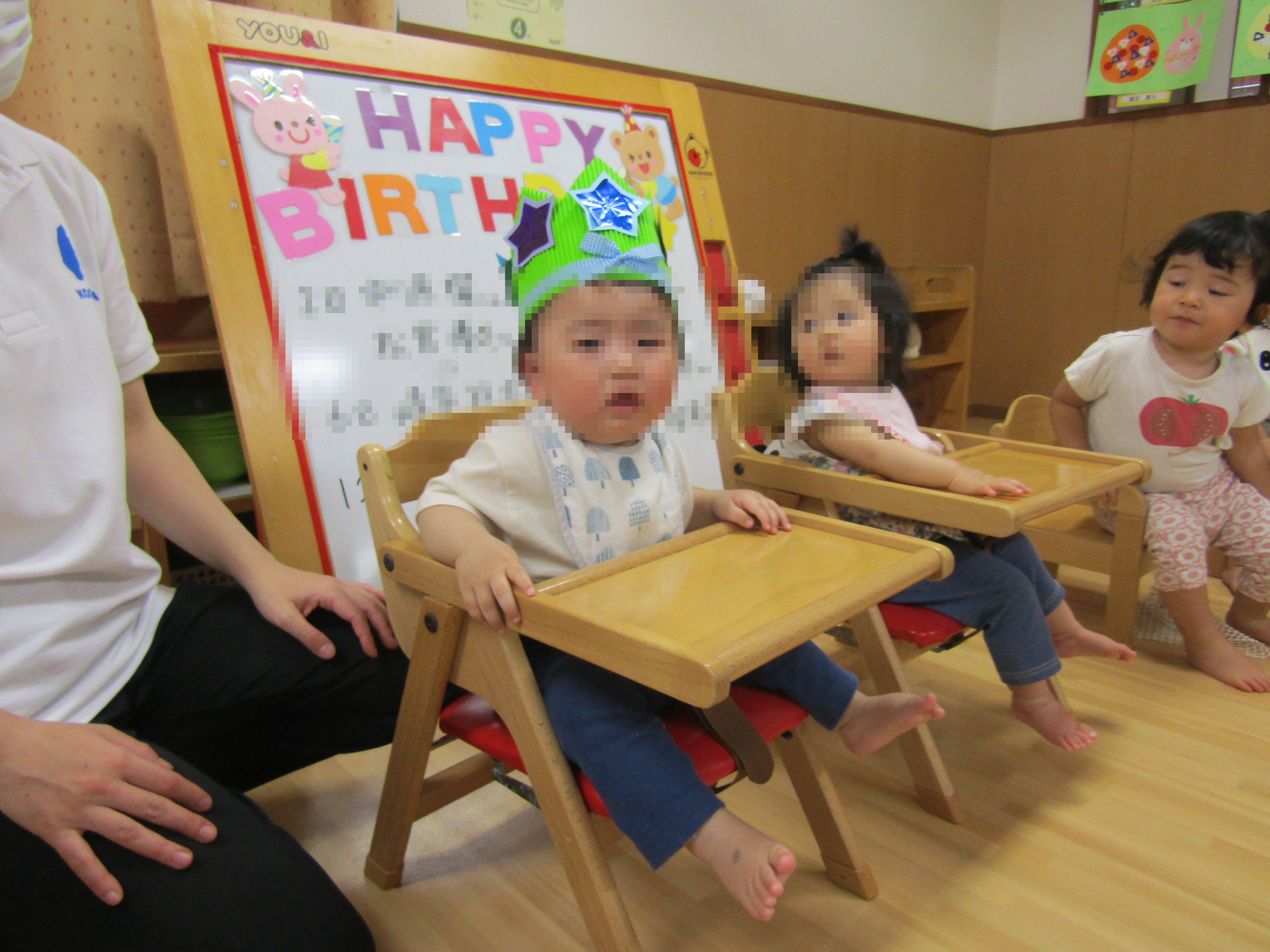 1Fは4月から入園したお友達も多く、何がはじまるのかな?と不思議そうにしていたり泣いてしまったりする赤ちゃんもいましたが、和やかな雰囲気の中でお祝いが出来ました。