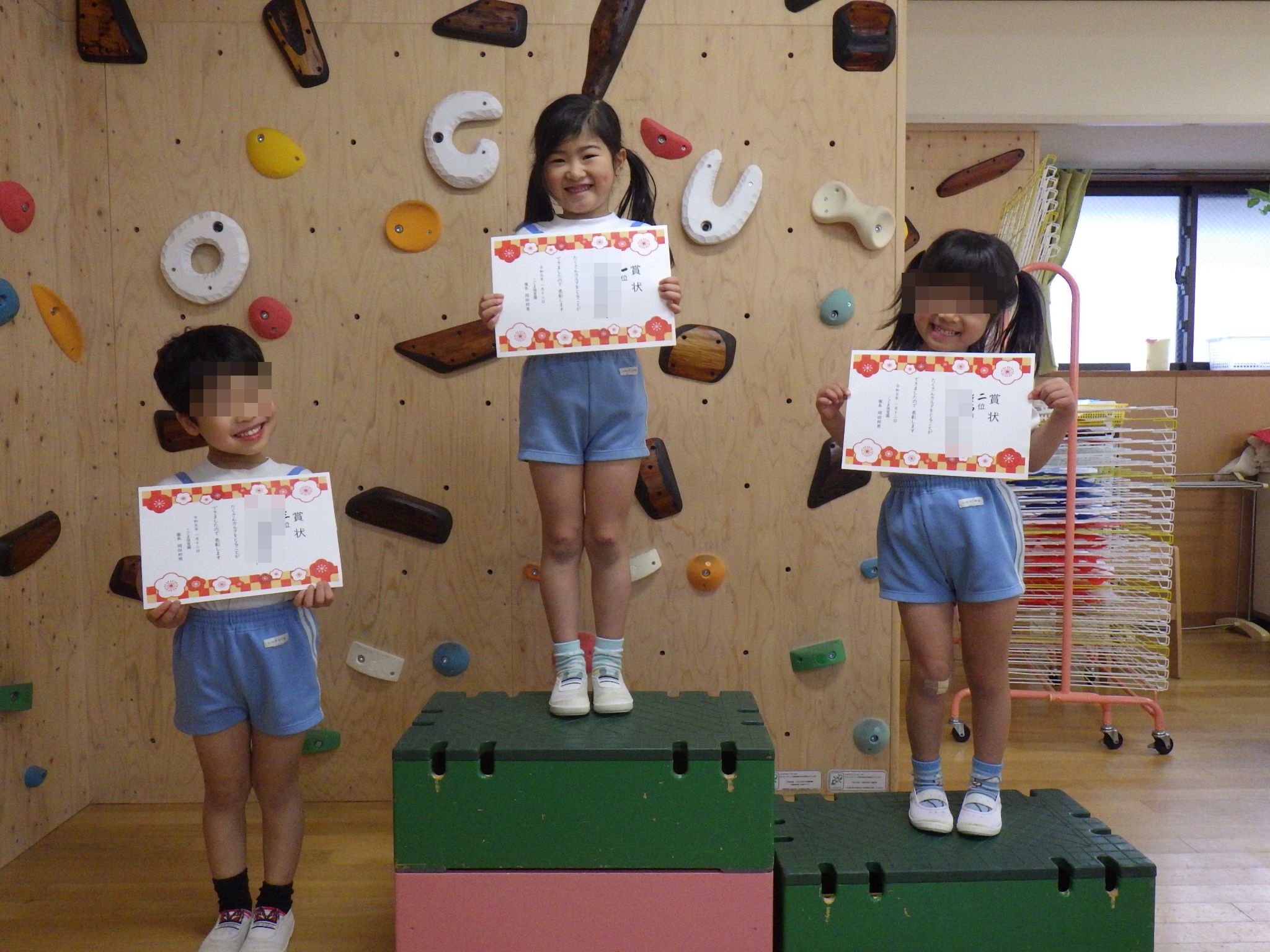 賞状をもらってにっこり笑顔の子どもたち。