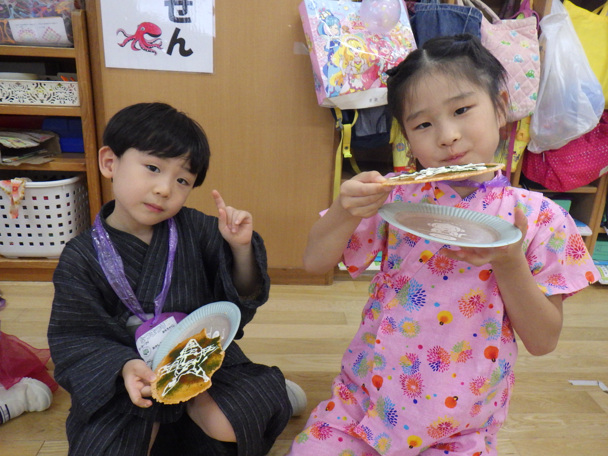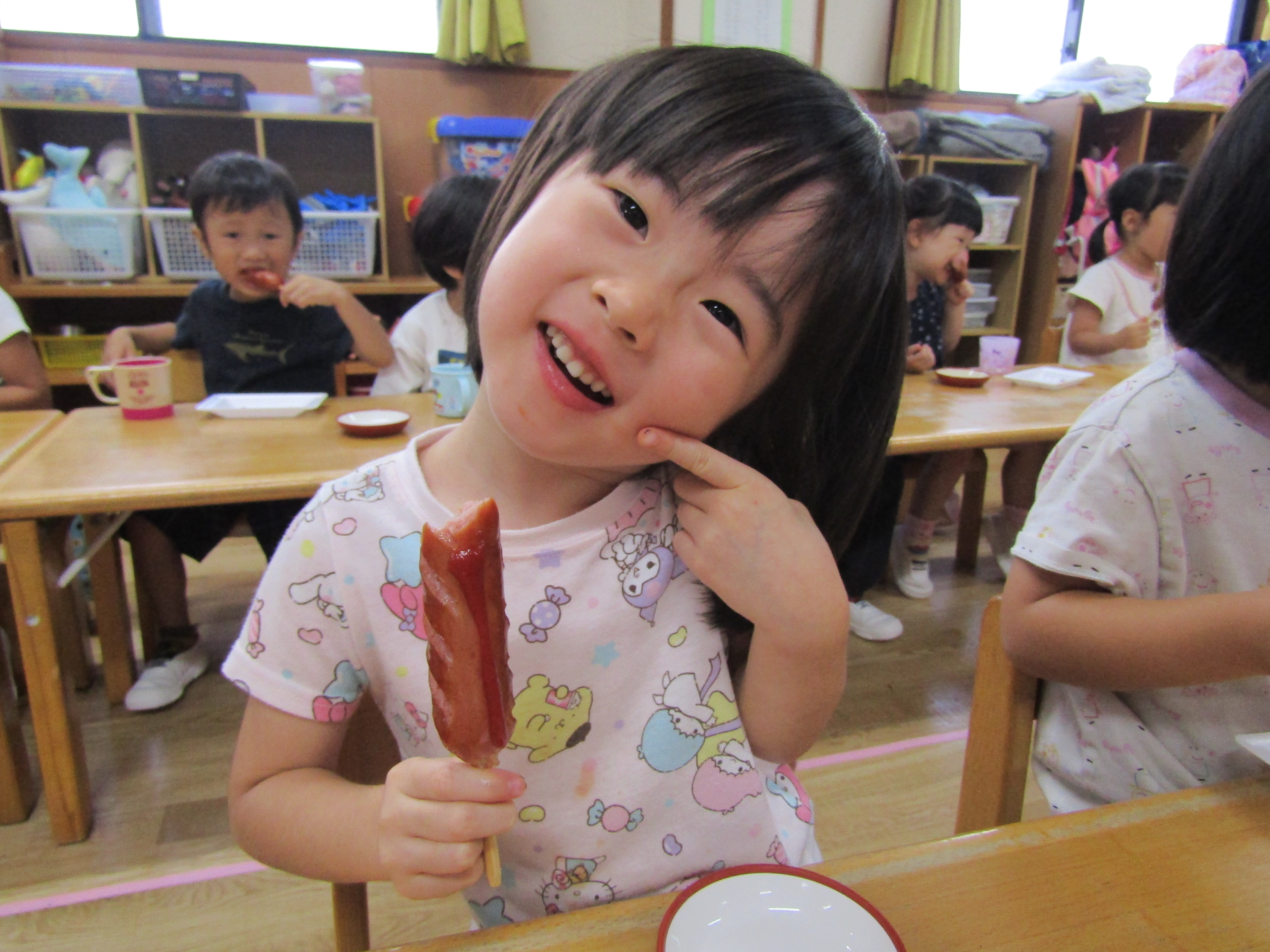給食、おやつも夏祭りメニュー!とっても美味しそうに食べていました。