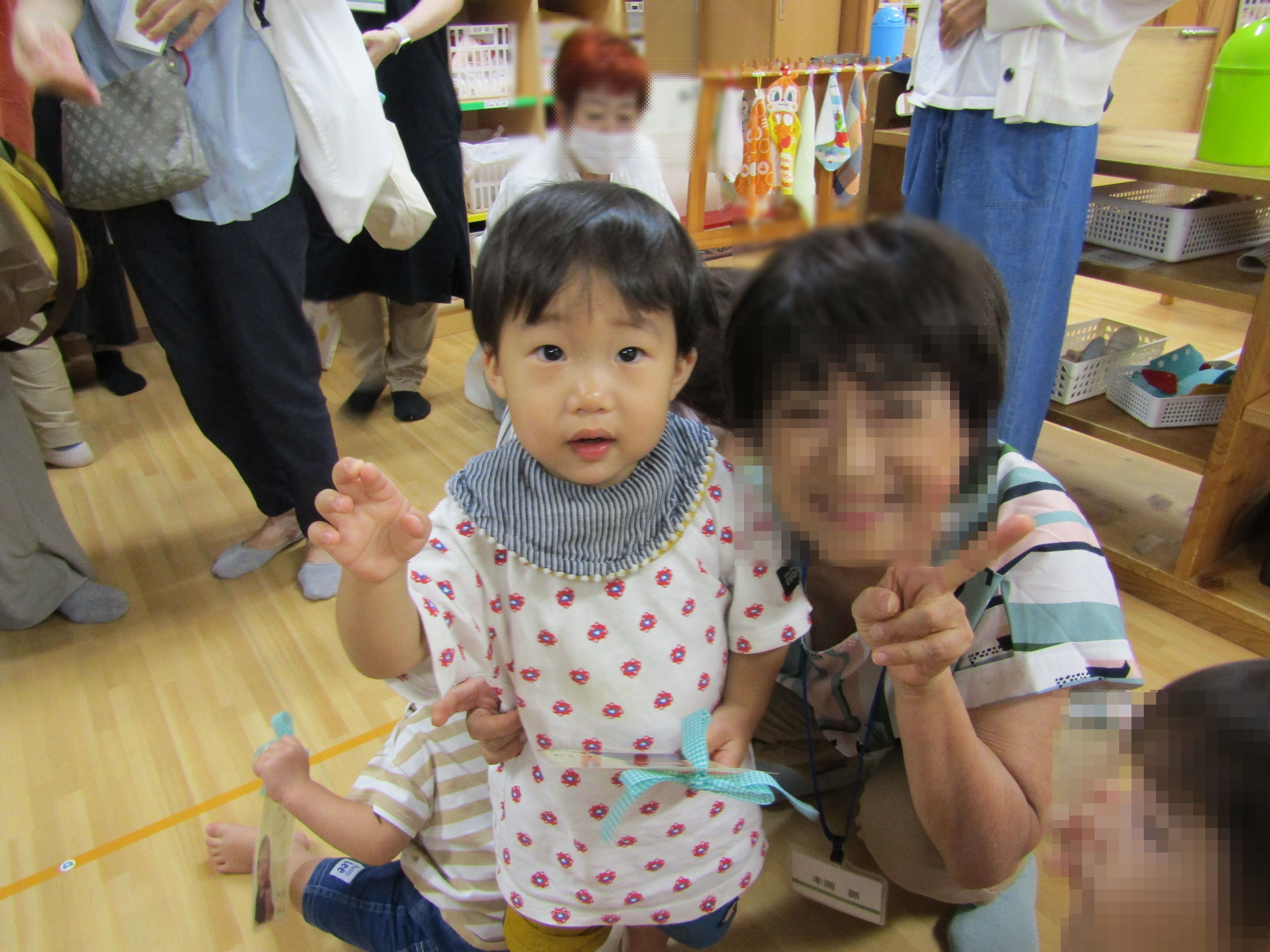 どんぐり組は運動あそびの様子や一緒に触れ合い遊びをして楽しみました。祖父母の方にだっこしてもらいとっても嬉しそうな姿が見られました。