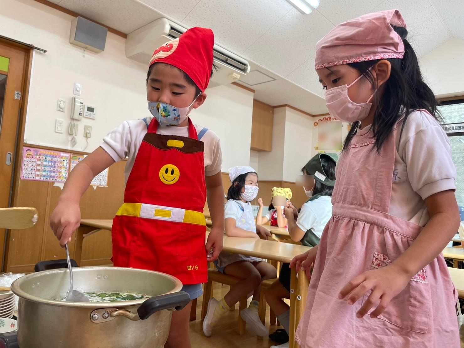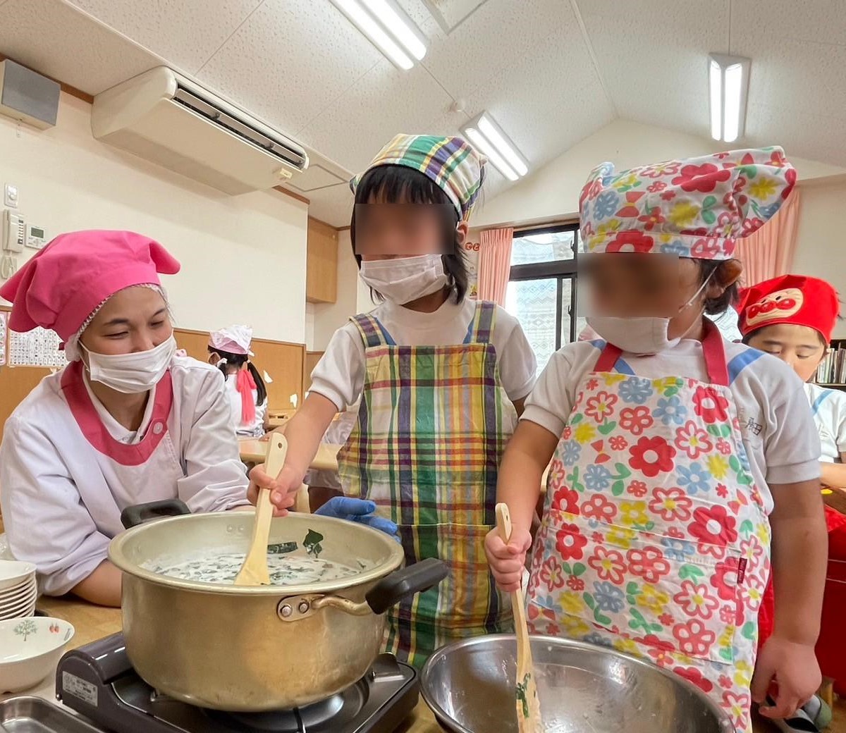 火傷をしないように、鍋とコンロの使い方を説明し、約束をしっかり守って作ることができました。