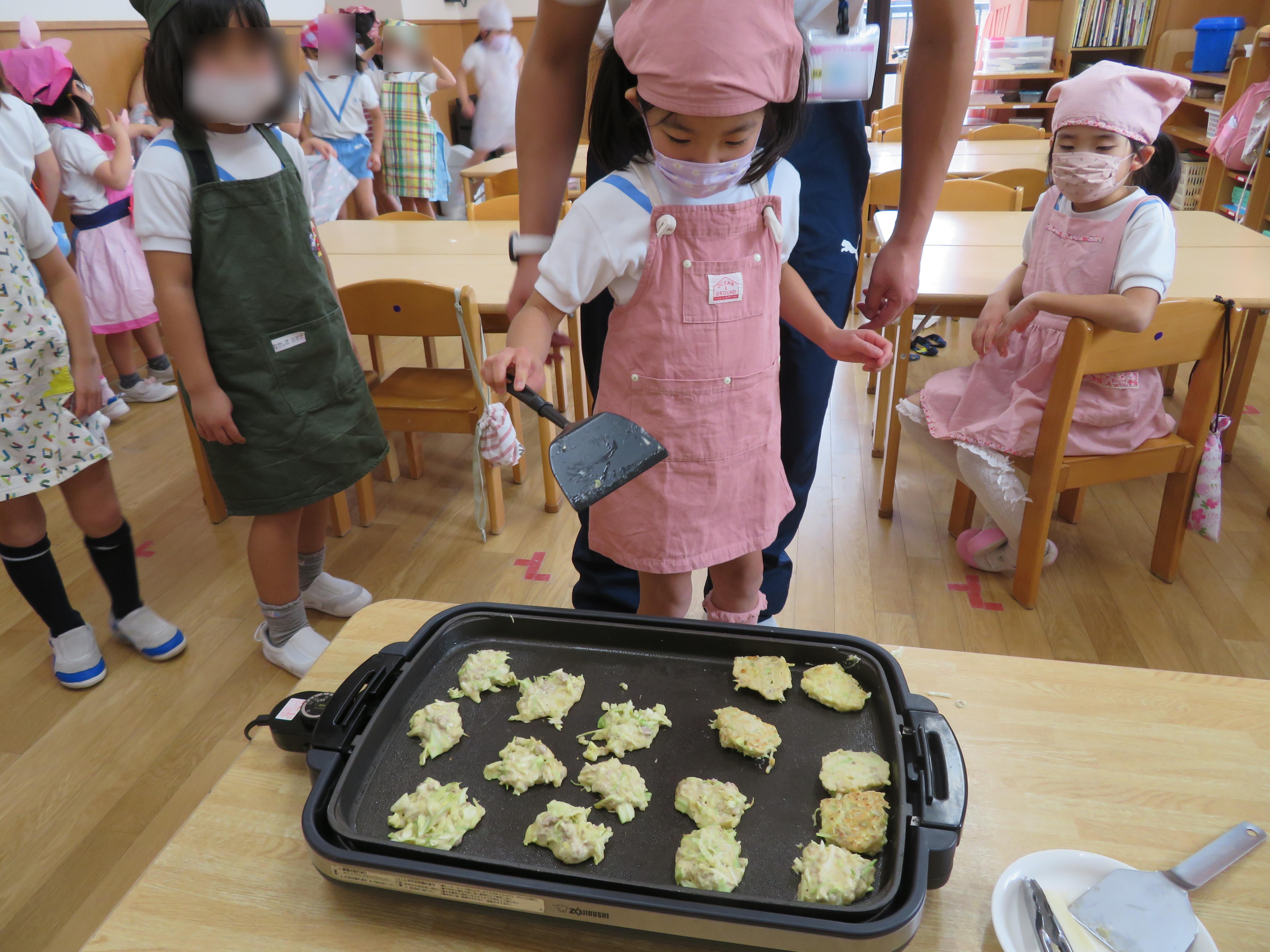 そら組でお好み焼きのクッキングをしました。