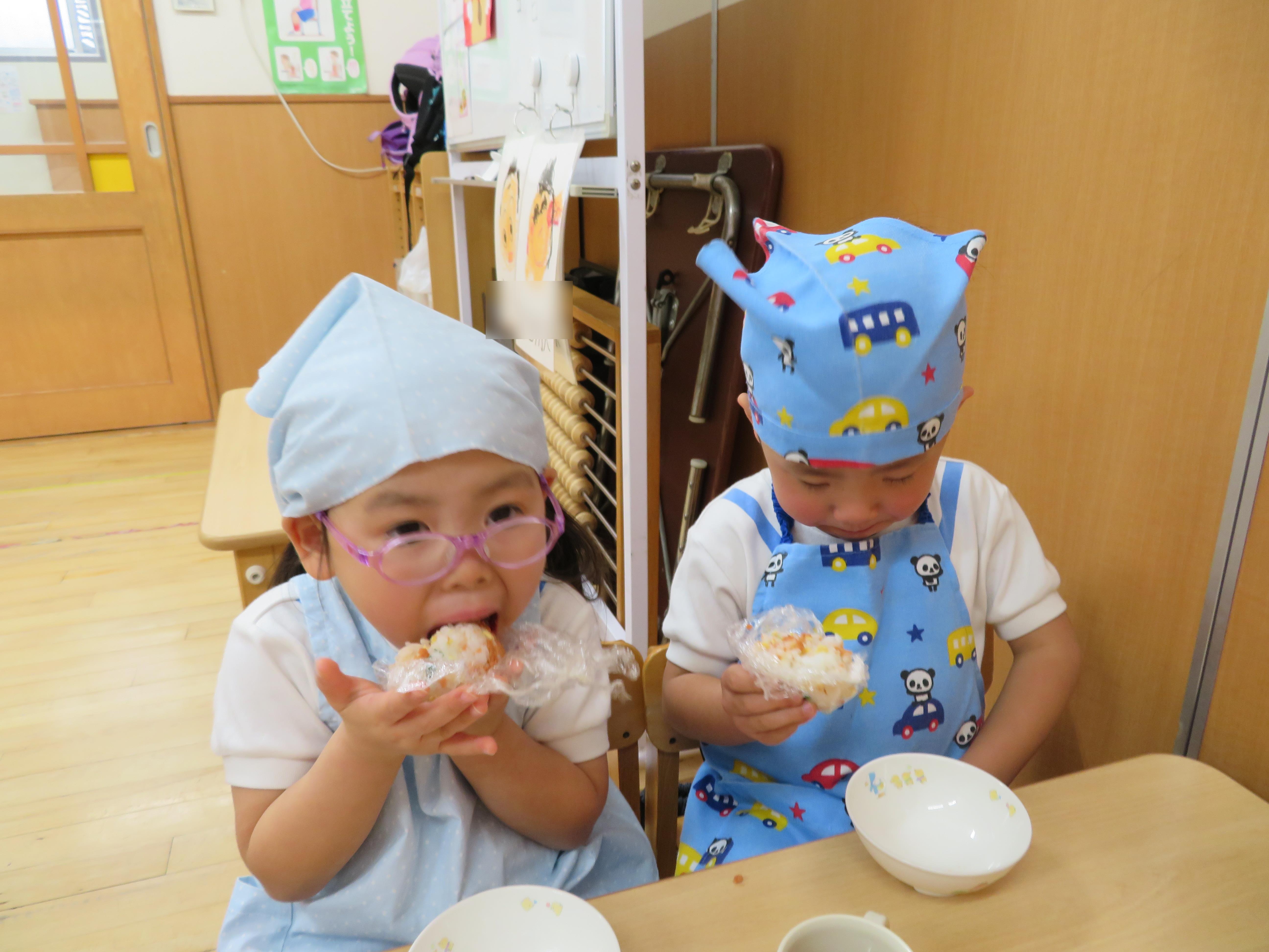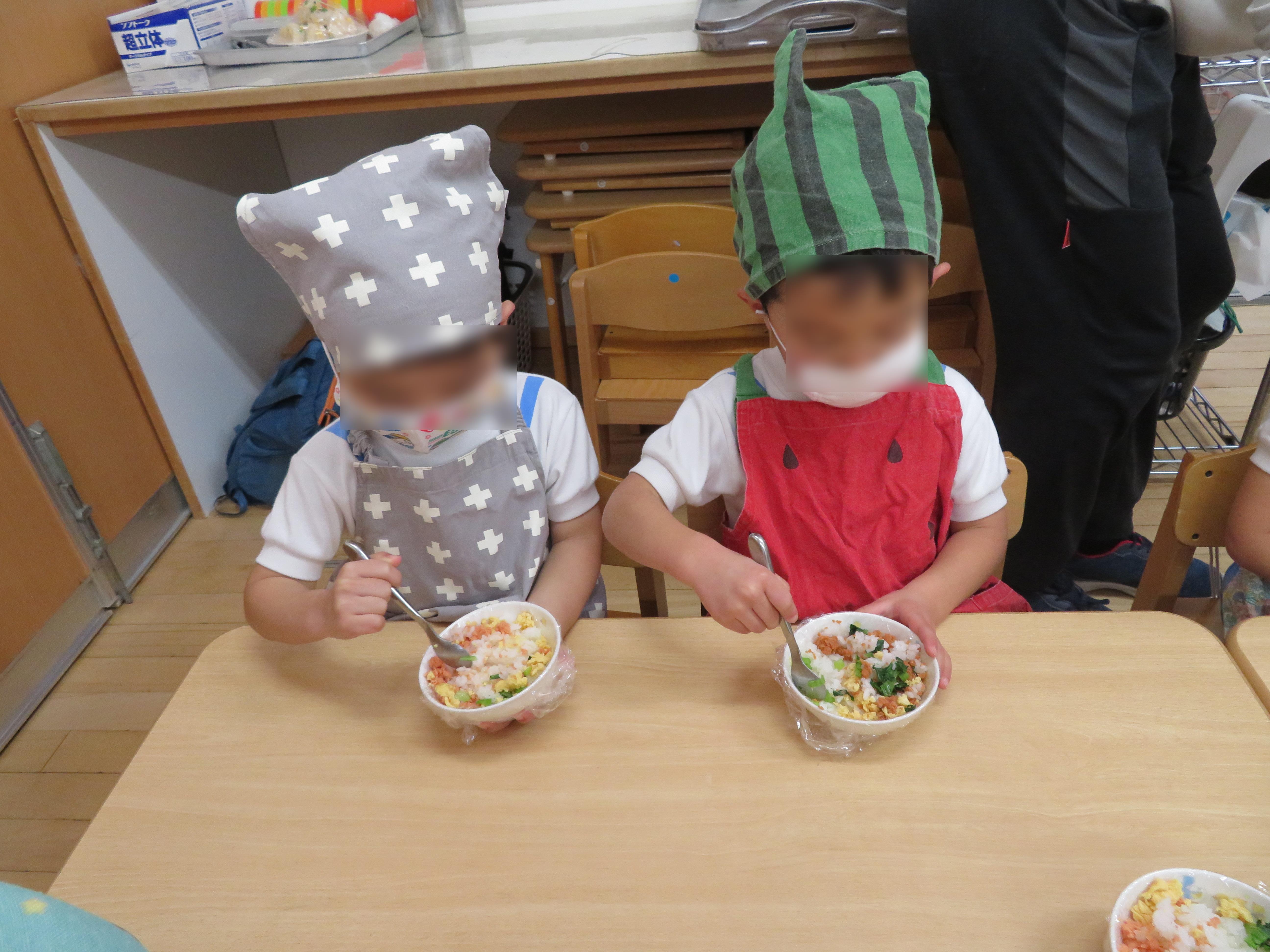 ほしぐみで鮭と卵の混ぜご飯をおにぎりにするクッキングをしました。