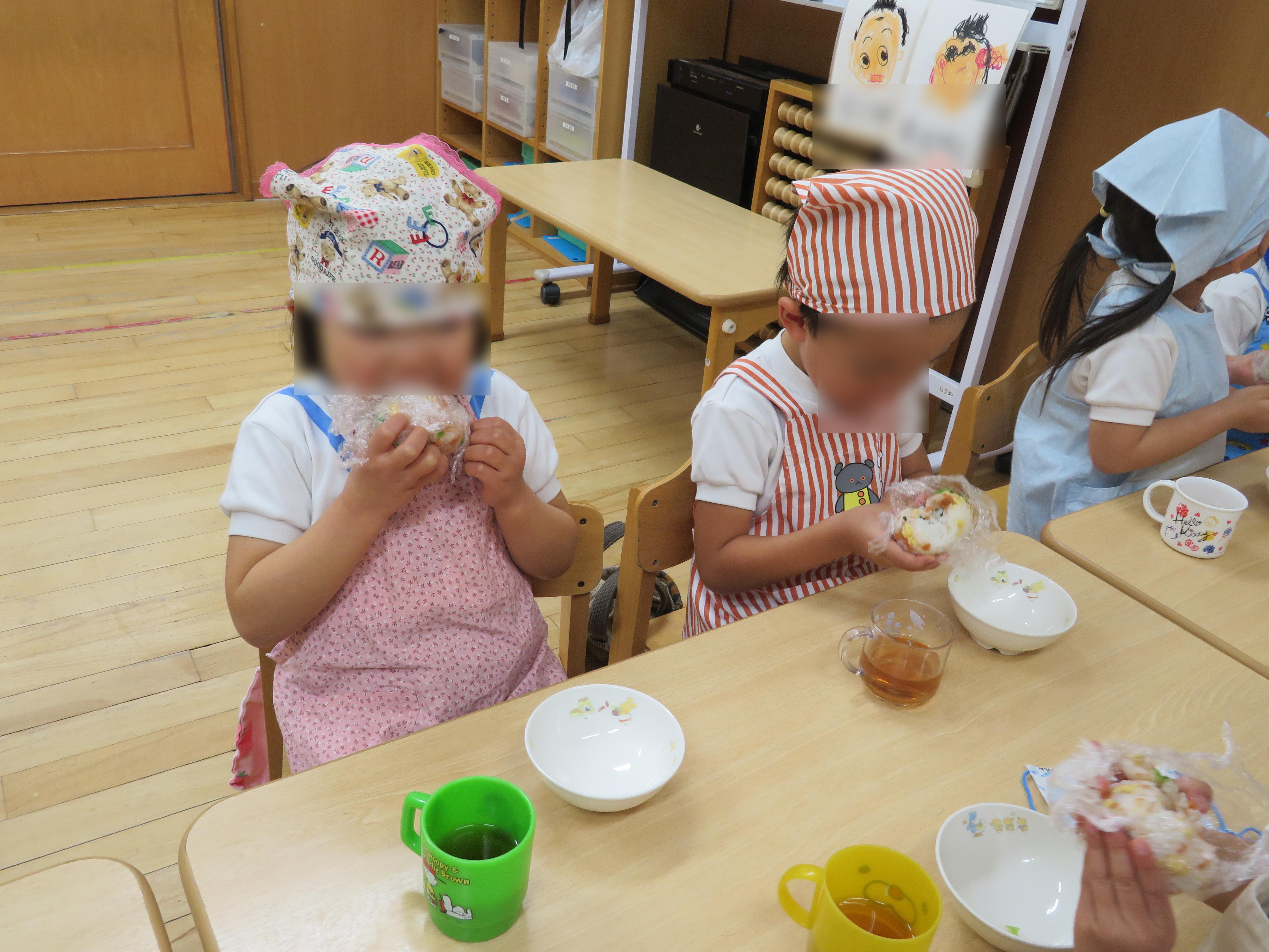 指でお山をつくって握るんだよと伝えると一生懸命握ってくれました。