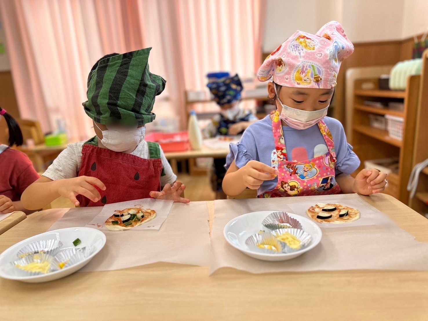 そら組で夏野菜ピザのクッキングをしました。 夏野菜についてお話をしました。