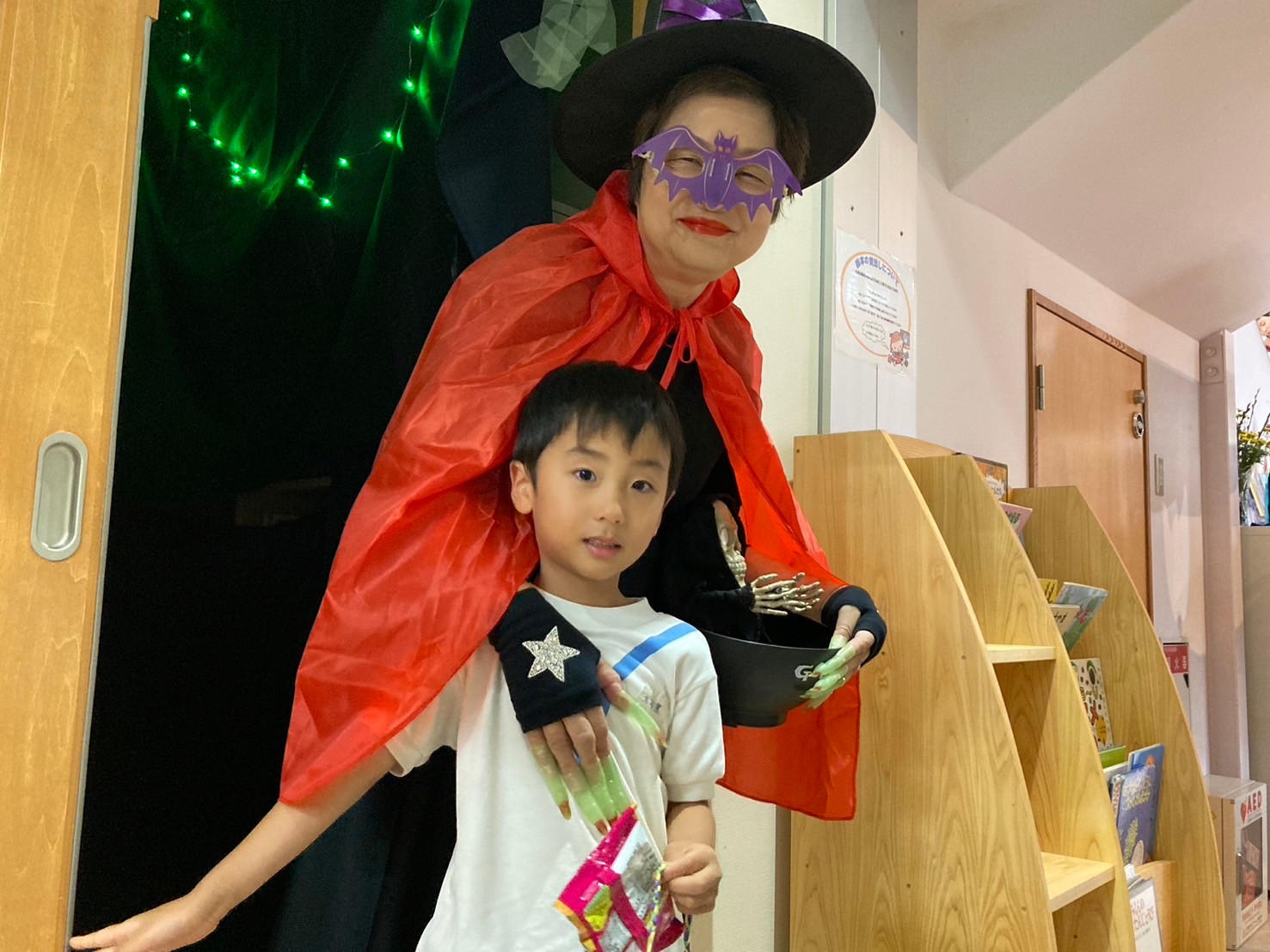 魔女の部屋では、みんな大きな声で「トリックオアトリート」と言うことが出来ました!!怖がる人もいましたが、お菓子をもらい皆満面の笑みに変わりました。