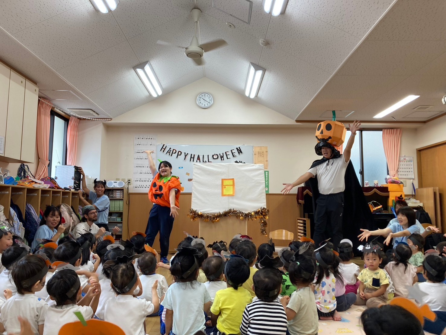 スペシャルゲストはハリー先生。今年はパイレーツに変身!!ハリー先生の登場に笑顔になる子ども達でした。