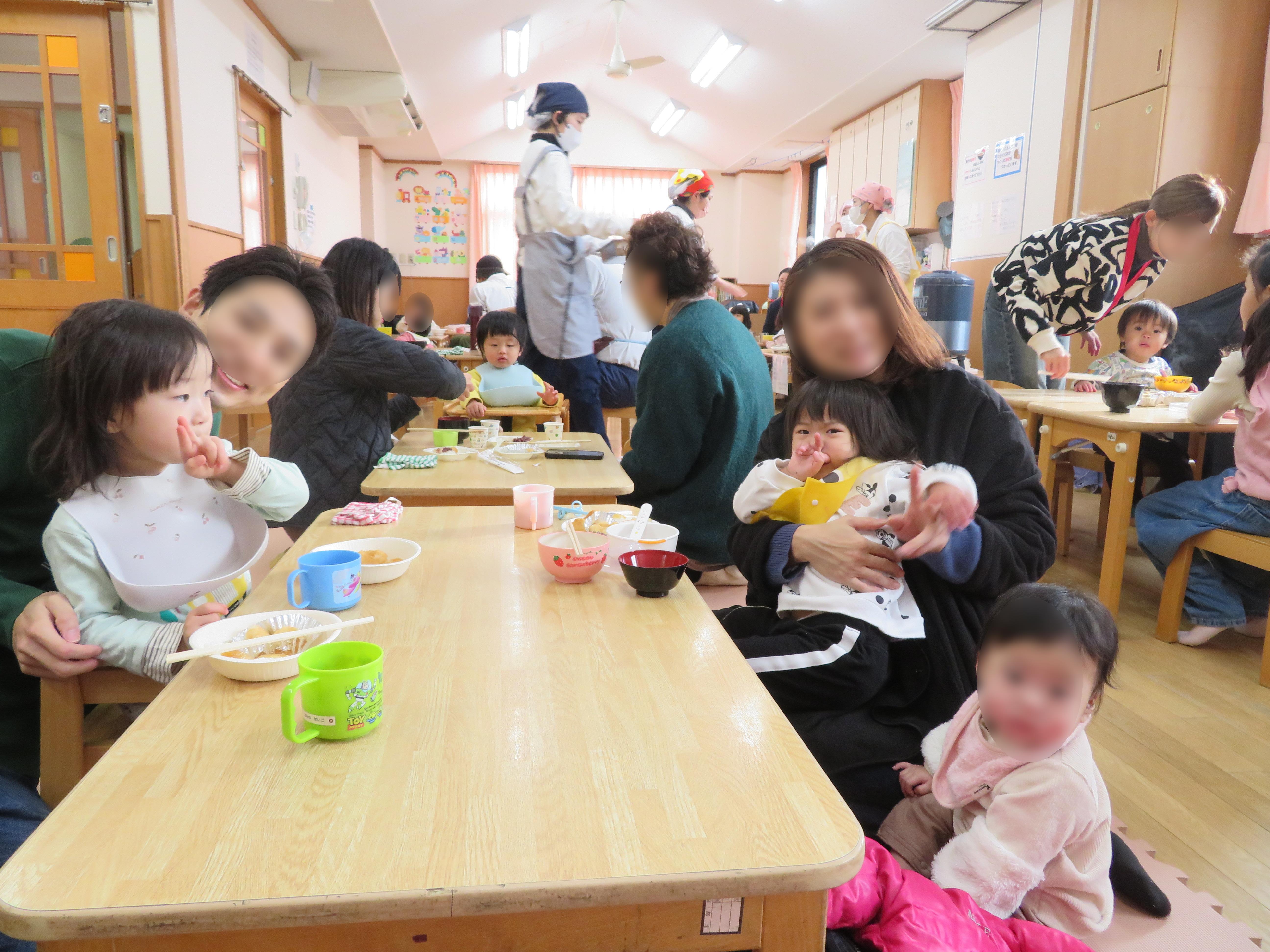 令和6年12月21日 一年の感謝を込めてお餅つき大会を開催しました。 たくさんの方に参加して頂き賑やかなお餅つき大会になりました。最初のお餅は、園長先生が鏡餅にしてくださいました。