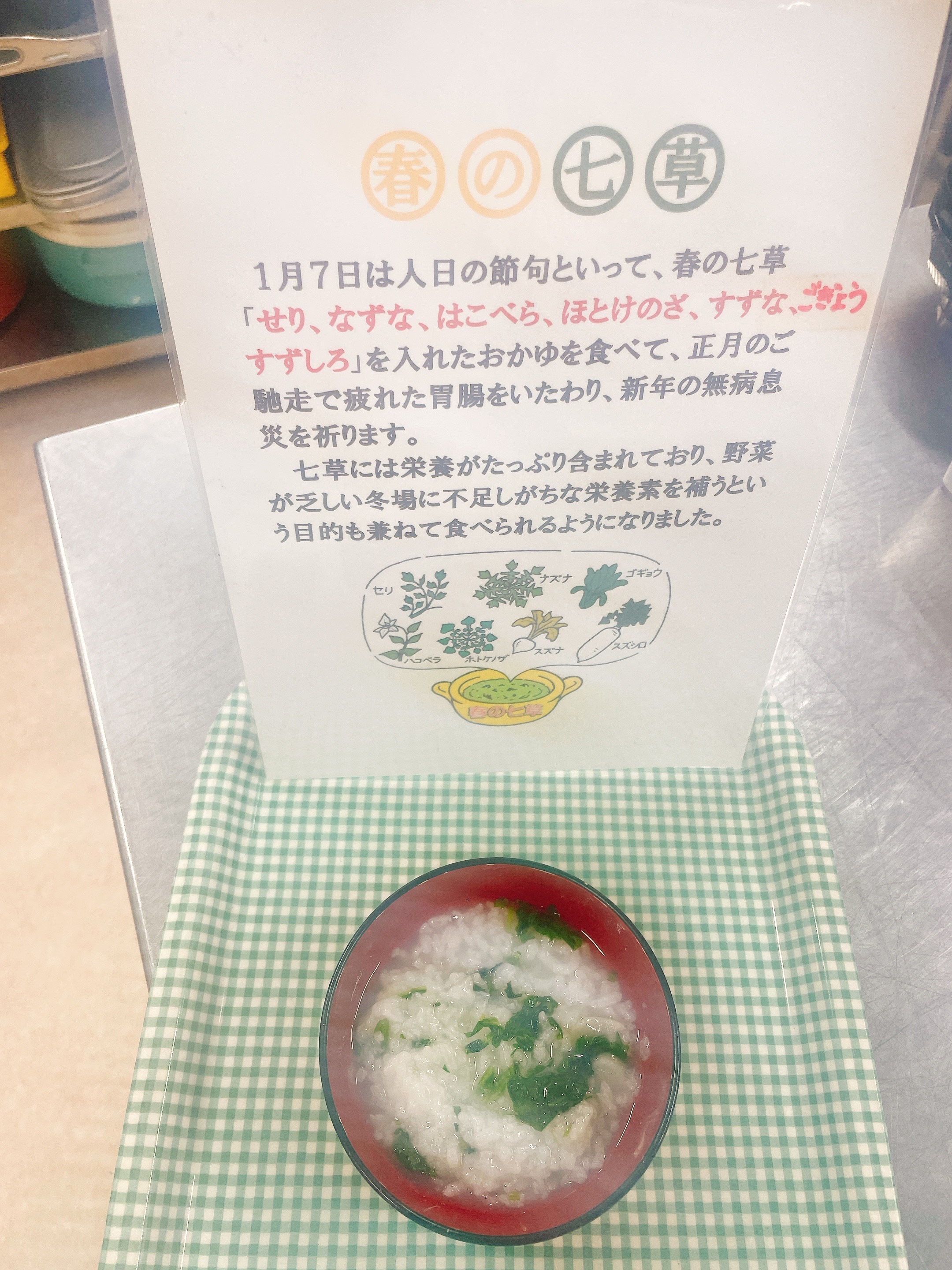 おやつで、七草がゆを食べました。