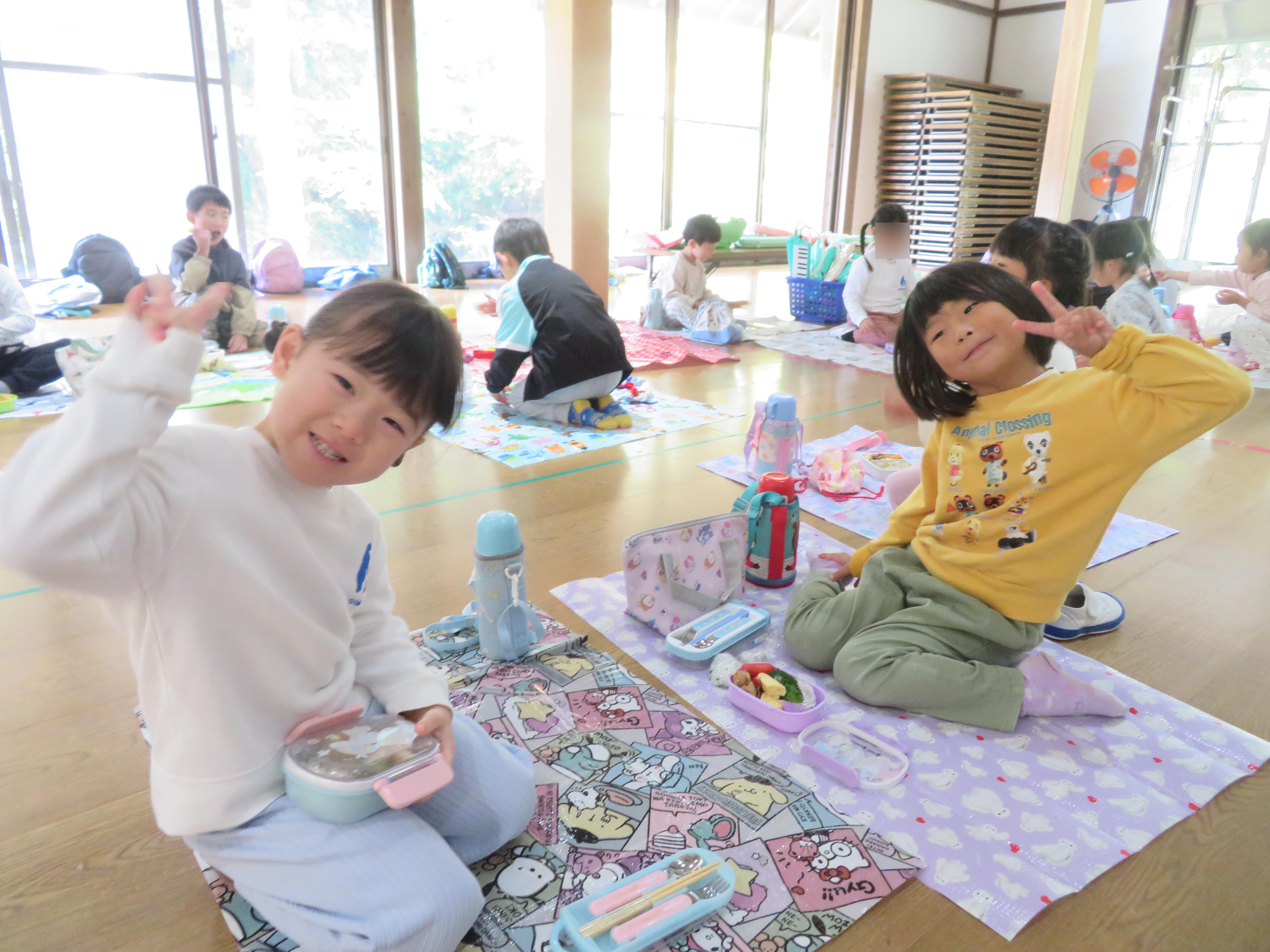 みんなでシートを広げて、嬉しそうにお弁当を食べていましたよ!